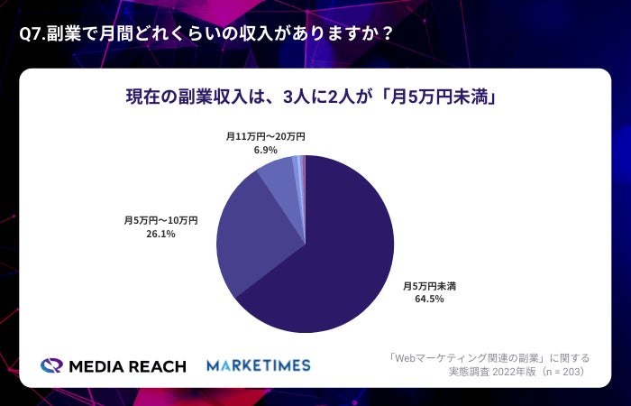 メディアリーチはメディアコンサルティングやデジタルメディア事業を展開する企業。同調査は4月9日から13日の間、Webマーケティング関連の副業をしている20代以上の男女203人を対象にインターネット調査で実施された。